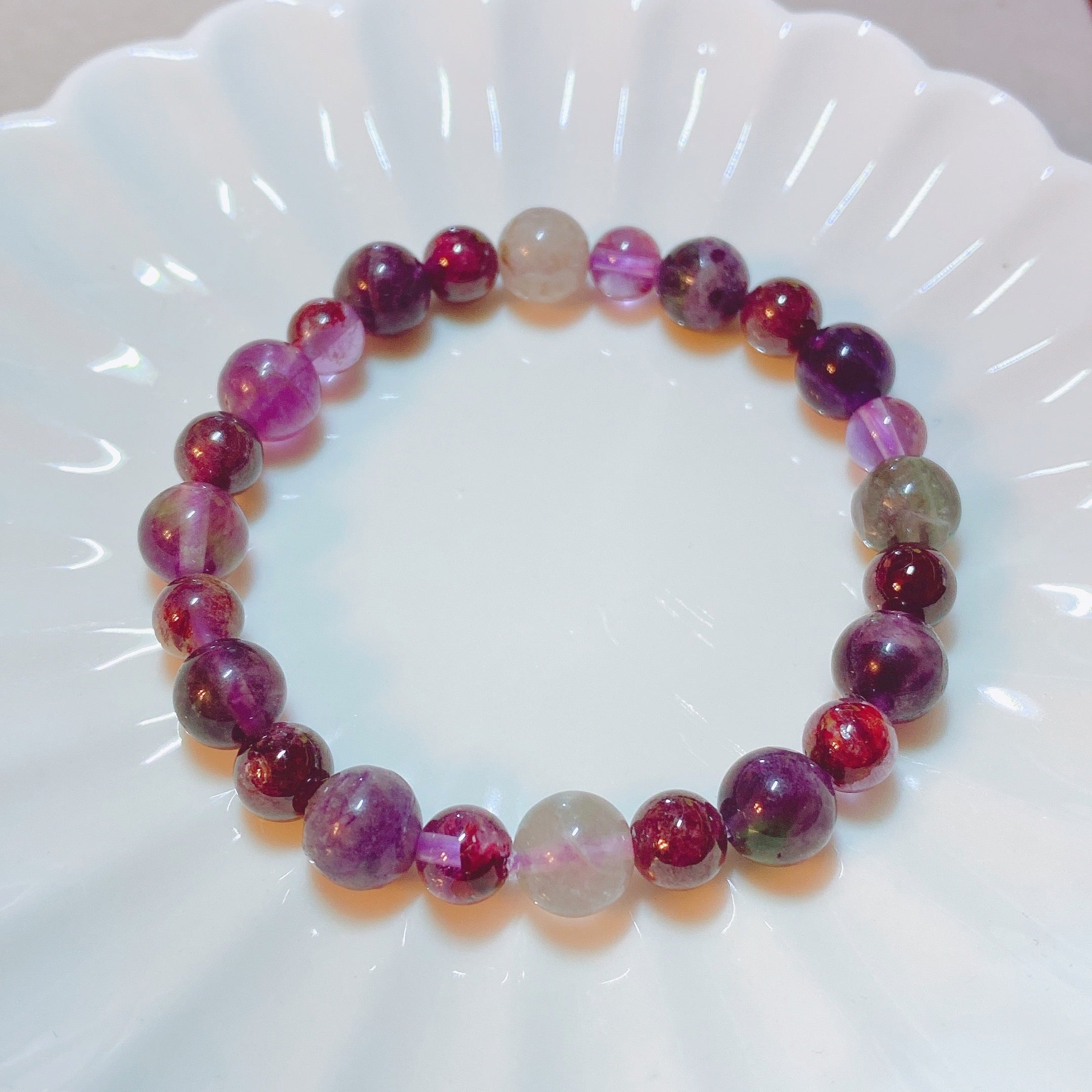 16cm【精神的自立】1月誕生石・2月誕生石・ガーネット・フローライト・ガーデンアメジスト・天然石・パワーストーン・ヒーリングストーン・ブレスレット・曼荼羅・浄化済み