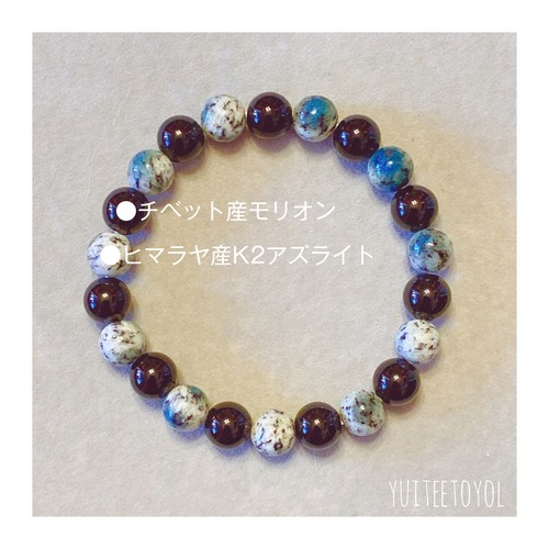 16cm【護られながらもどんどん遠くへ -次元上昇-】チベット産モリオン・ヒマラヤ産K2アズライト・天然石・パワーストーン・ヒーリングストーン・ブレスレット・曼荼羅・浄化済み
