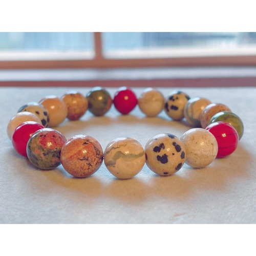 16cm【カルマを浄化し地球のエネルギーをたっぷり感じる】ダルメシアンジャスパー・レッドジャスパー・ユナカイト・インプレッションストーン・アフリカンオパール・天然石・パワーストーン・ブレスレット・浄化済み