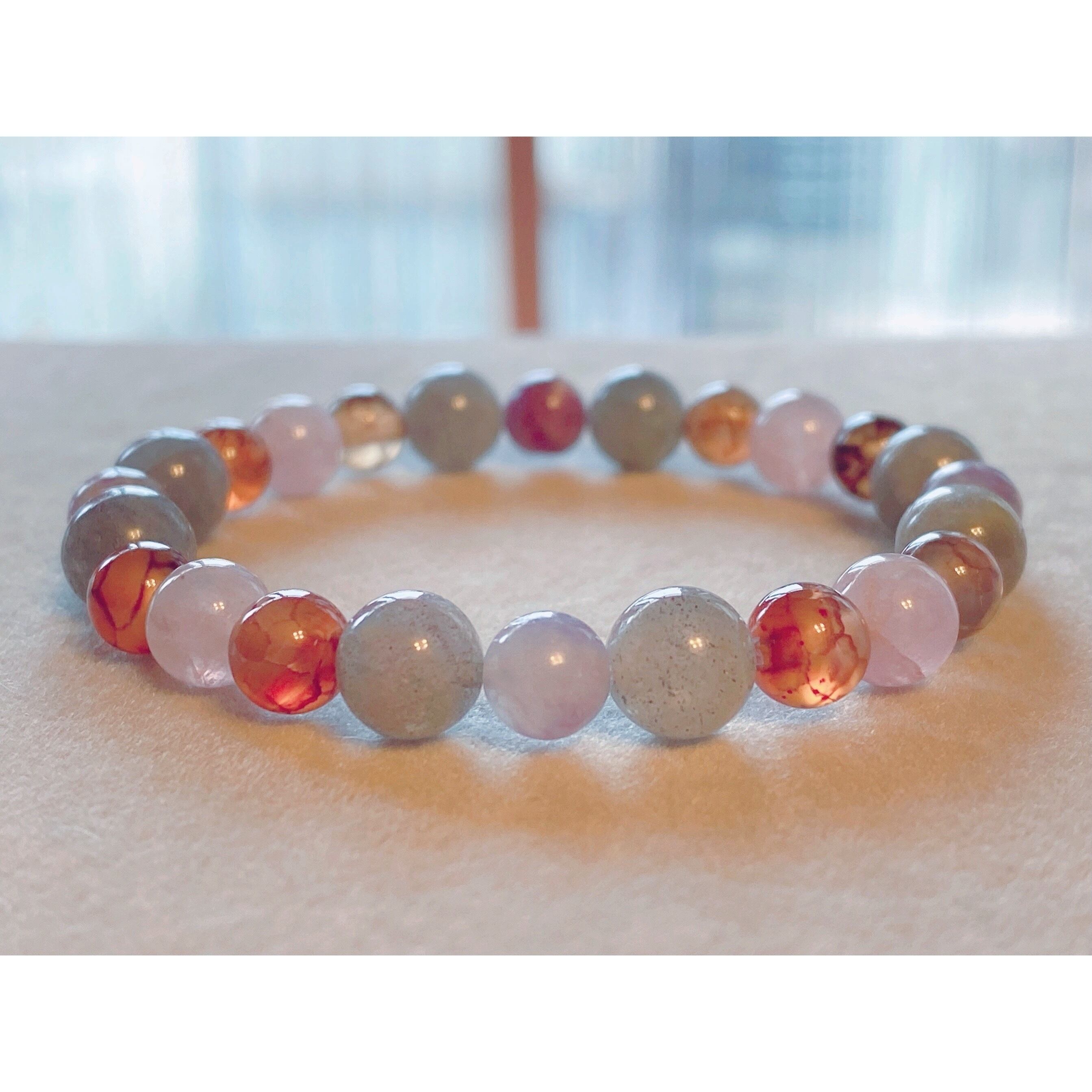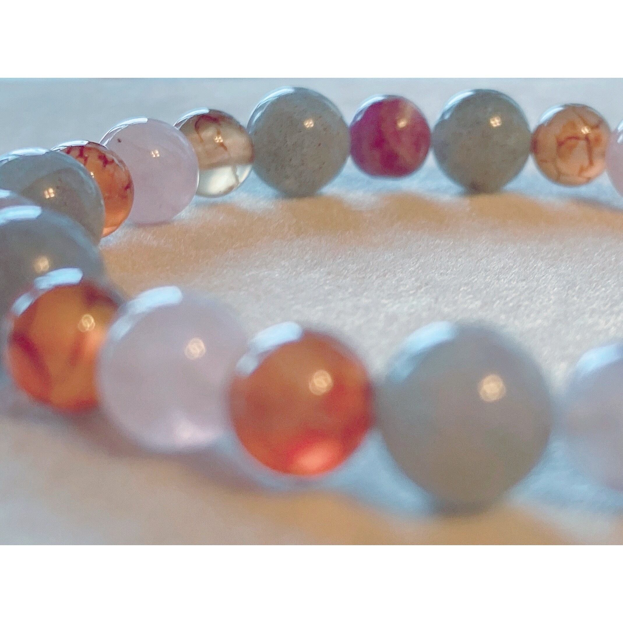 15cm【夢に羽ばたくチカラ】マダガスカル産ローズクォーツ・レピドライト・ラブラドライト・ドラゴンアゲート・天然石・パワーストーン・ヒーリング・ブレスレット・曼荼羅・浄化済み