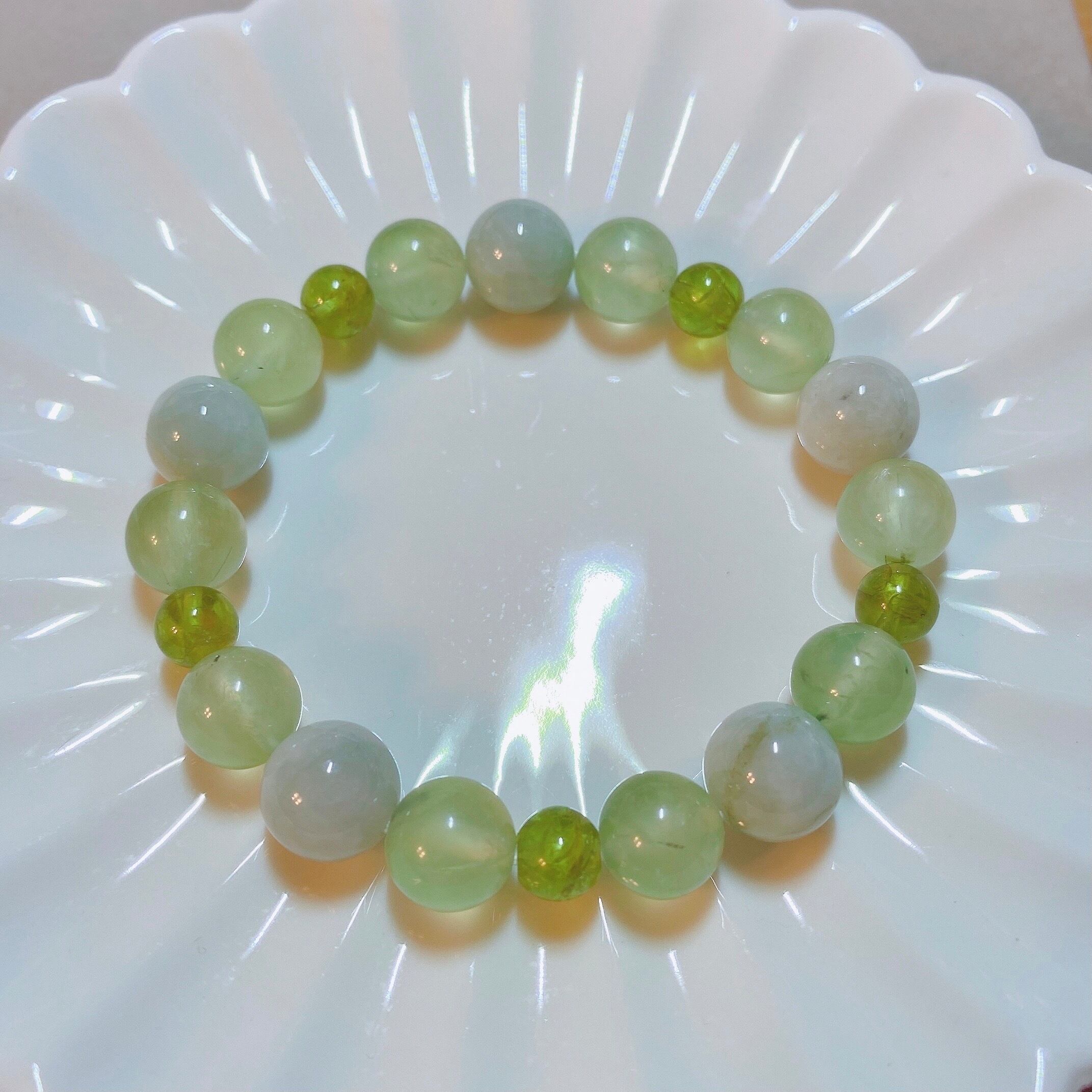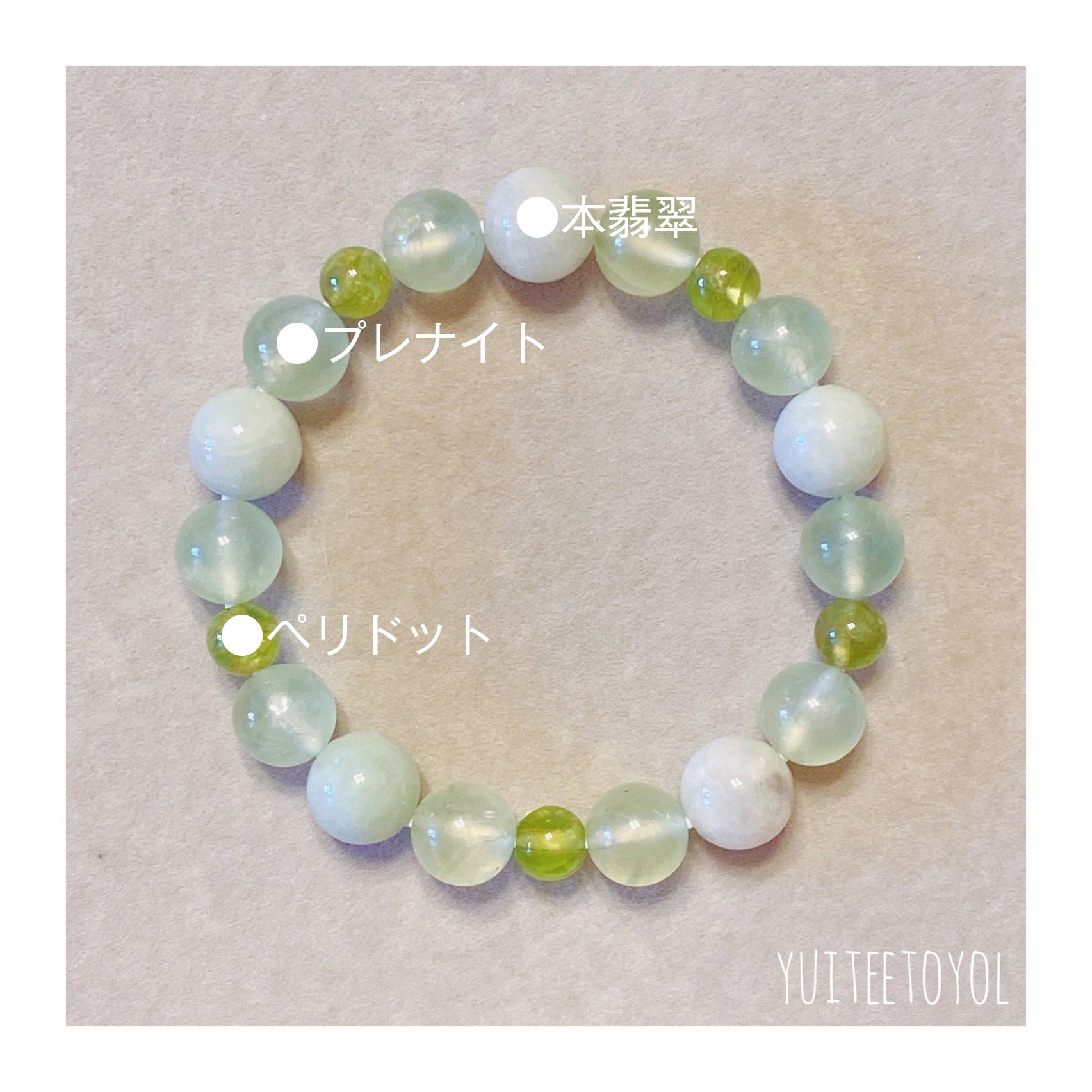 15cm【内なる自分の到来】5月誕生石・本翡翠・プレナイト・ペリドット・天然石・パワーストーン・ヒーリングストーン・ブレスレット・曼荼羅・浄化済み