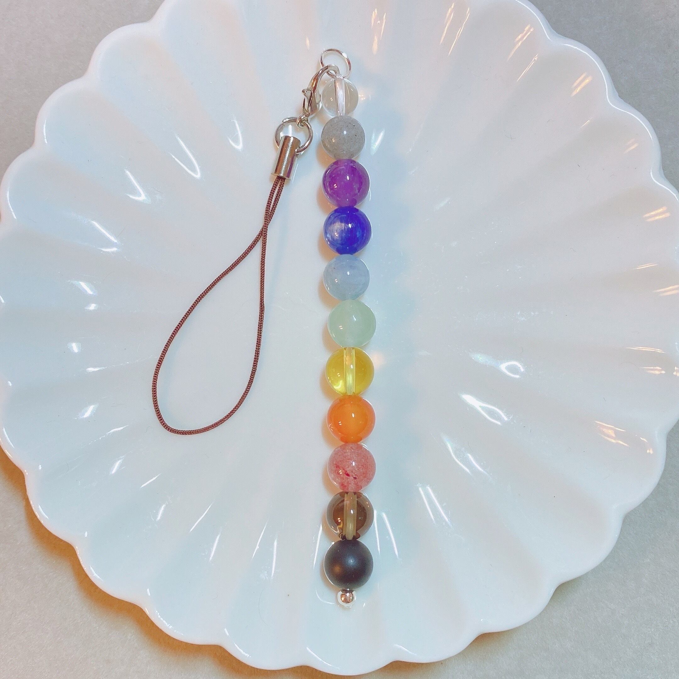 【グラウンディング+7チャクラ+宇宙へ!】御守り・ストロベリークォーツ・シトリン・フローライト・カイヤナイト・アメジスト・ラブラドライト・天然石・パワーストーン・ストラップ・キーホルダー・浄化済み