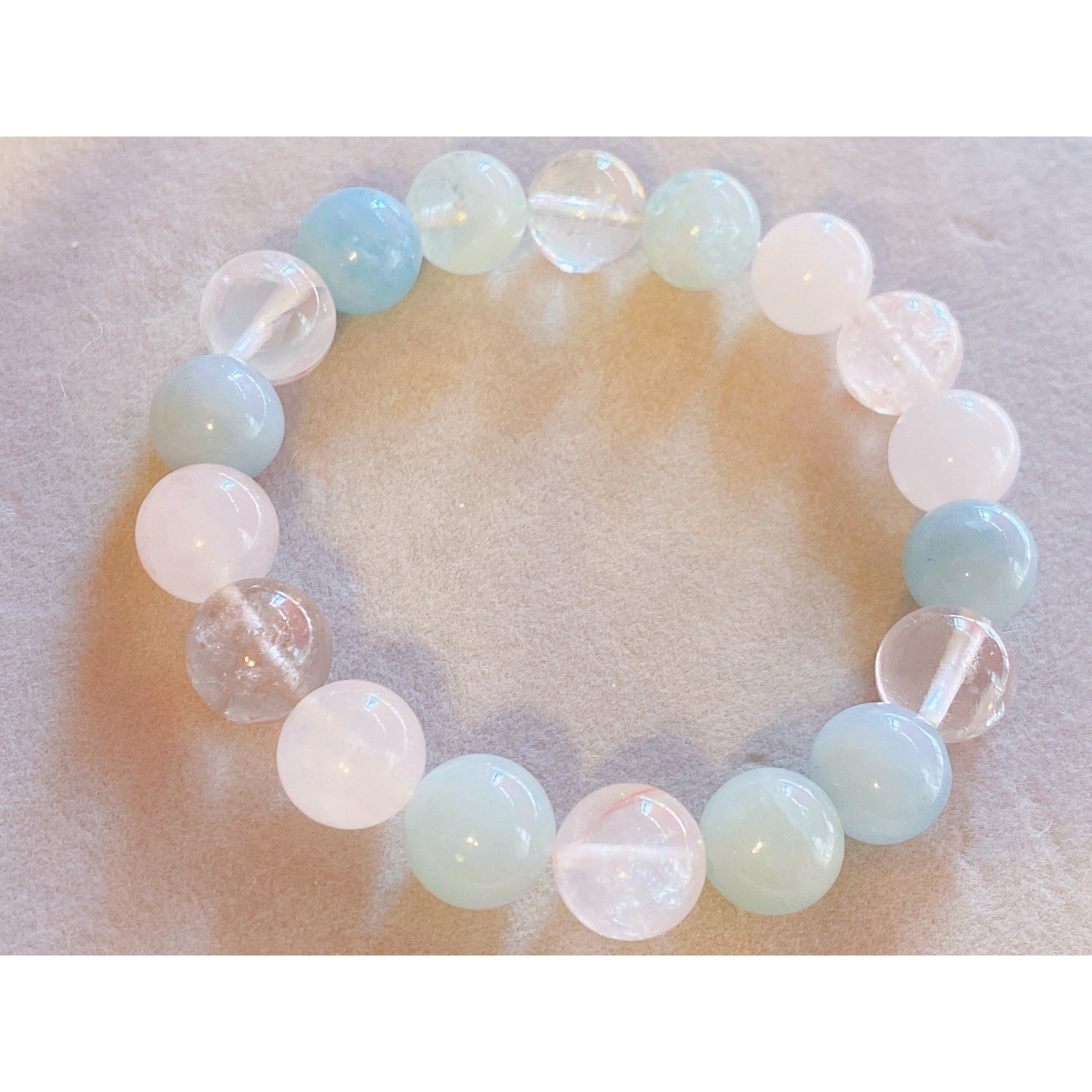 16cm【脱皮のとき】3月誕生石・アクアマリン・10月誕生石・ローズクォーツ・グリーンベリル・レッドヘマタイト・ガーデンクォーツ・天然石・パワーストーン・ブレスレット・曼荼羅・浄化済み