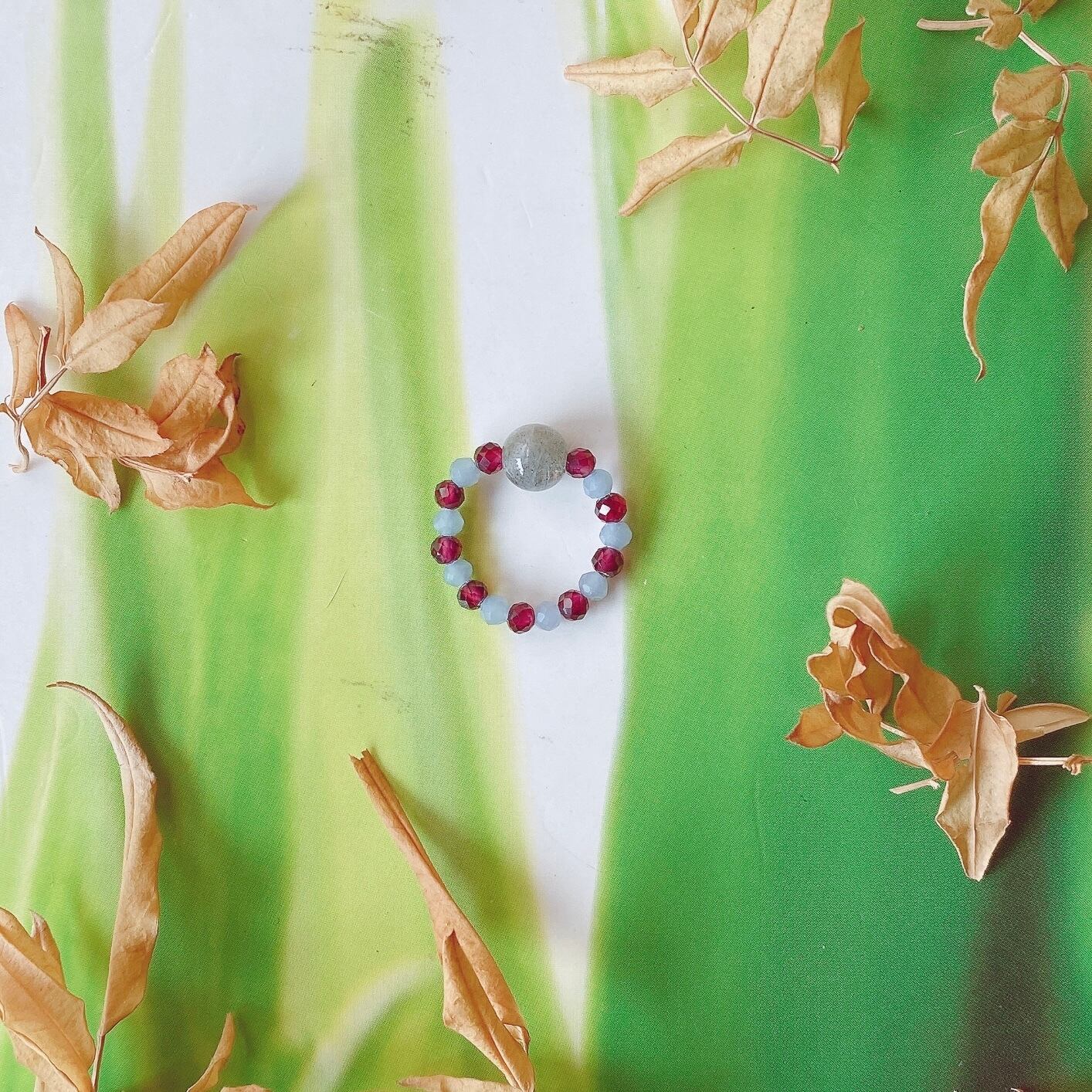 伸び縮みするゴム紐と小粒の天然石を使用しておりますので指にするっと馴染みます。