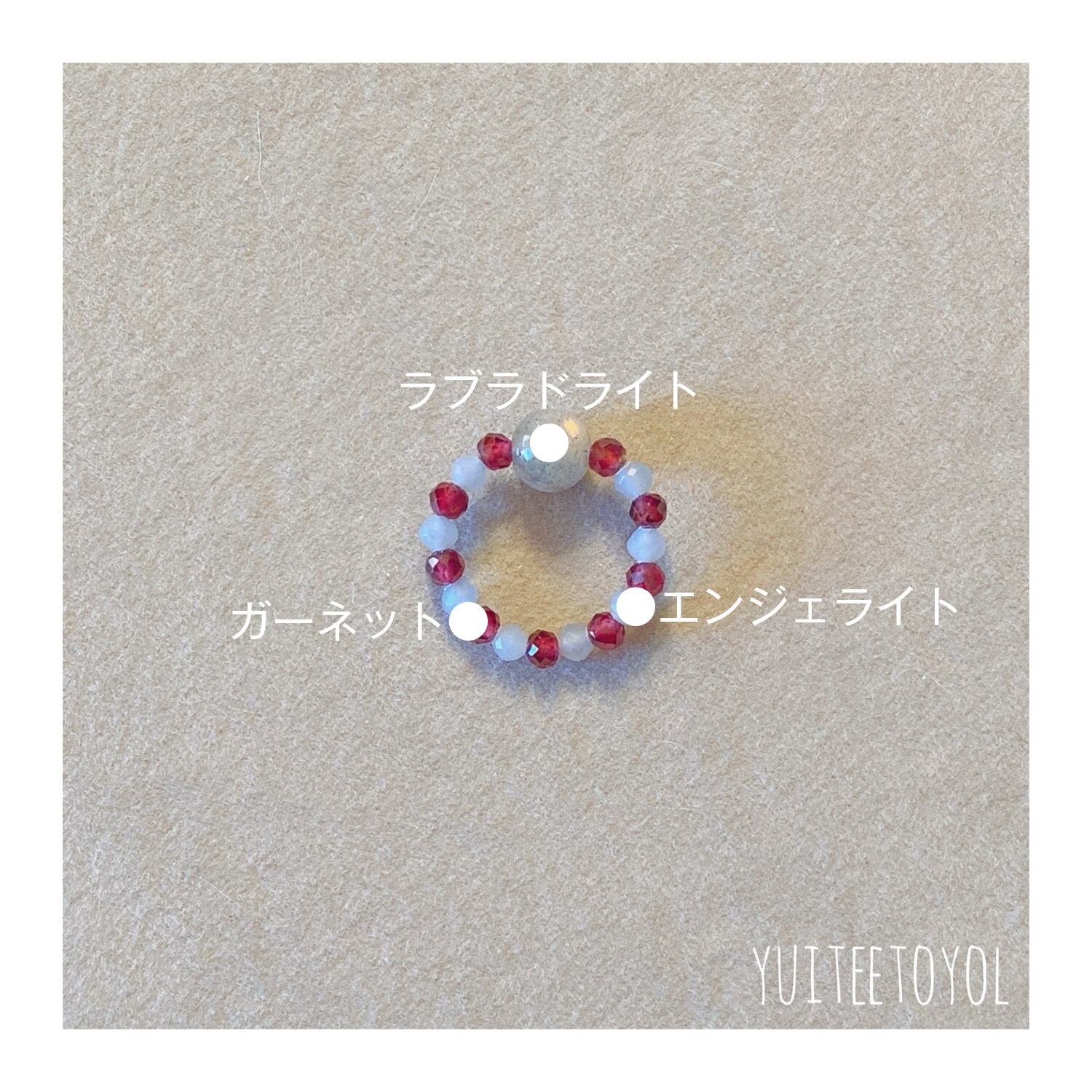 【ジャンヌ・ダルク】サイズ変更OK・1月誕生石・ガーネット・エンジェライト・ラブラドライト・天然石・パワーストーン・ヒーリングストーン・指輪・リング・曼荼羅・浄化済み