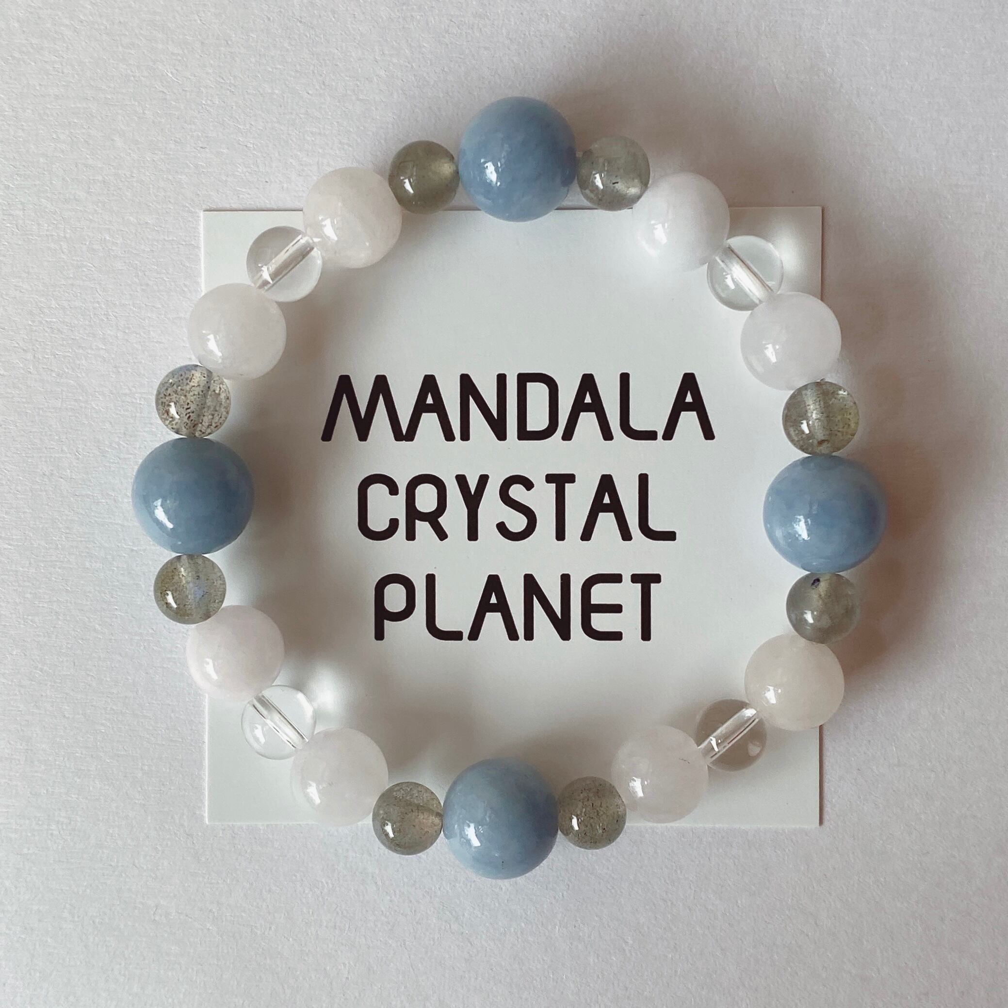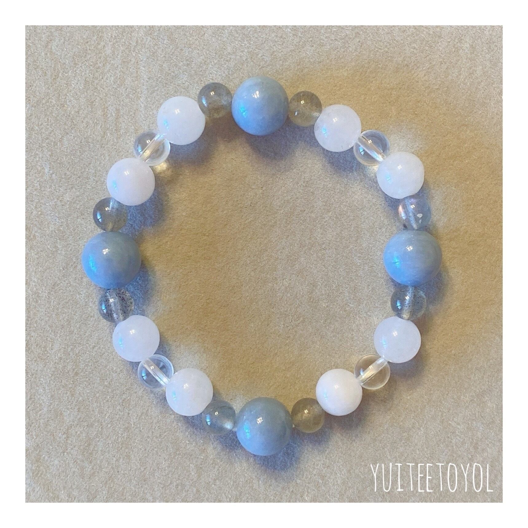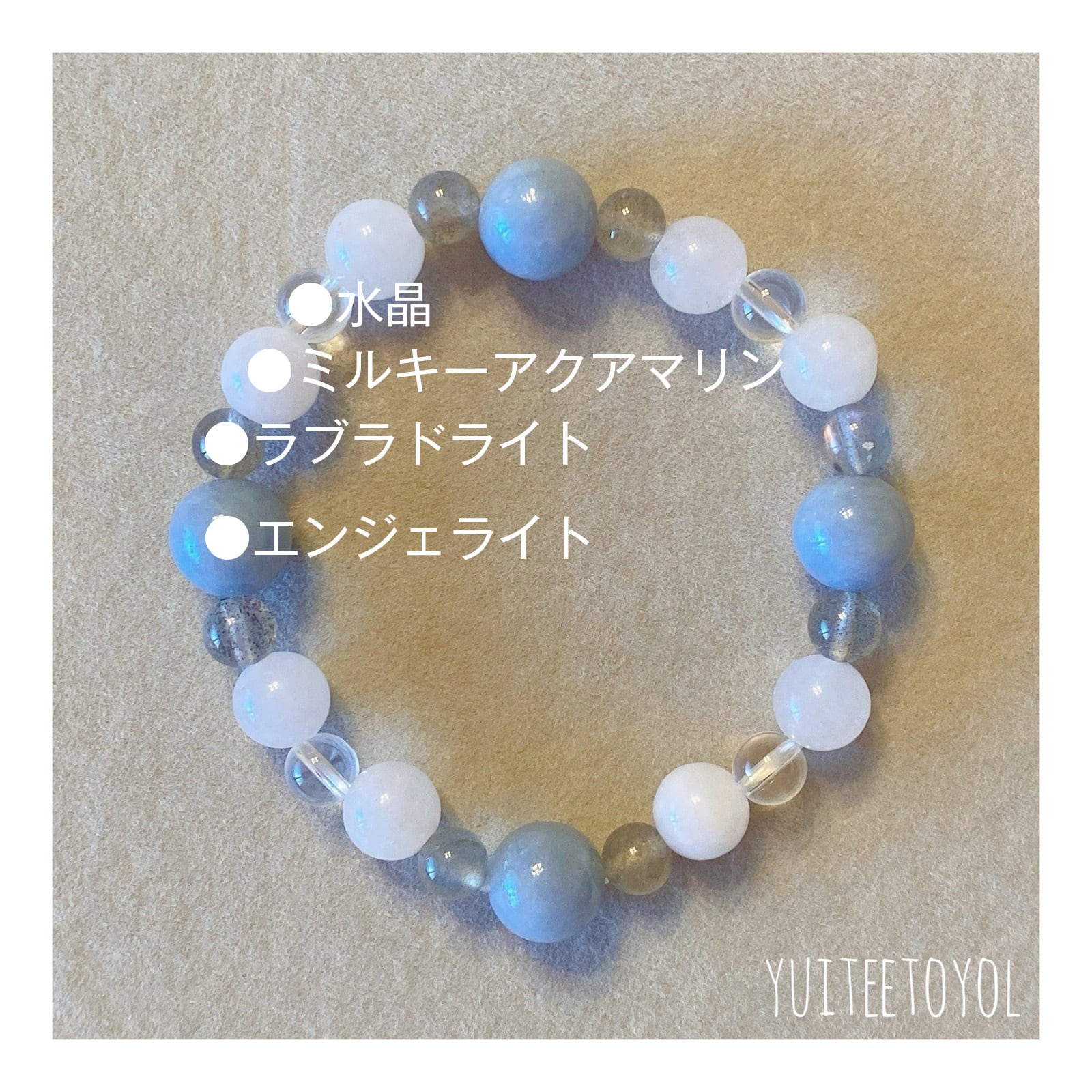 16cm【宇宙へ繋がる海の天使】エンジェライト・3月誕生石・ミルキーアクアマリン・ラブラドライト・4月誕生石・水晶・天然石・パワーストーン・ヒーリングストーン・ブレスレット・浄化済み・曼荼羅
